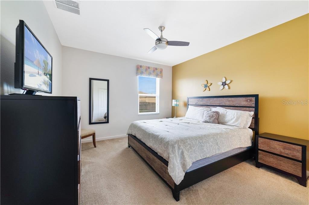 Beautiful fully furnished resort vacation pool home for immediate purchase. 6 large bedrooms and 5 baths. Turnkey ready with the great floor plan Coconut Palm by Park Square Homes. Great loft upstairs with game/media room & theme rooms. Granite kitchen/bathroom countertops, all kitchen appliances, laundry room, screened covered heated pool, covered lanai, and southwest facing pool. Professionally decorated furniture package including leather furniture. Gated entrances. The HOA fully maintains the lawns, common areas and kid-friendly areas. The clubhouse features a resort-style pool & lounge complex and a full exercise room/gym. Large pool with slides, tennis courts and pool cabanas. 15 minutes from Disney. Perfect for income generating short-term rental vacationers seeking what you will have – a secure, family-friendly resort experience. It can be your primary residence or your indulgent vacation home.
